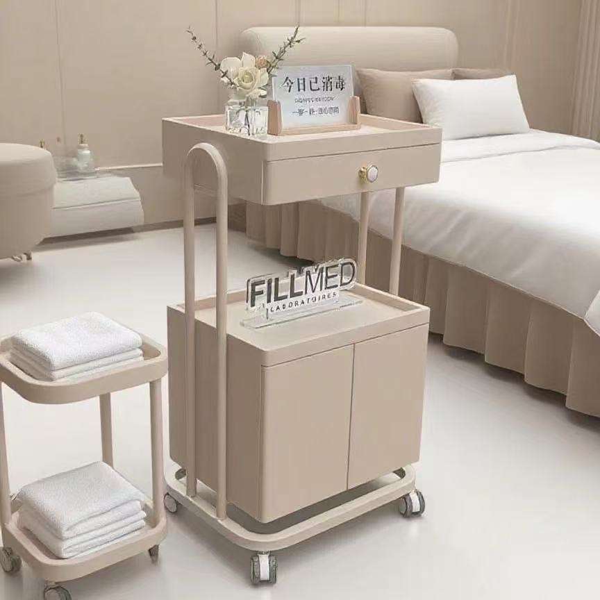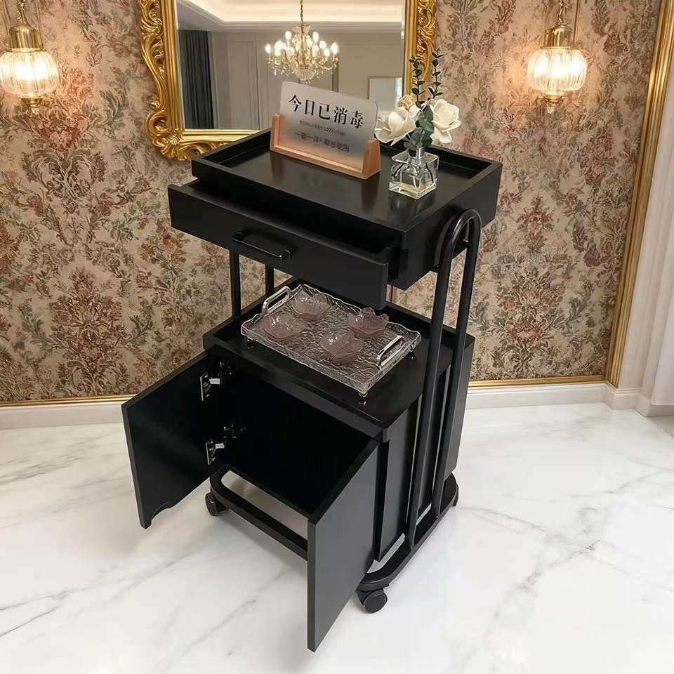 รถเข็นเสริมสวยแบบมีล้อ รุ่น 2026 L ดีไซน์หรูหรา รถเข็นอุปกรณ์ทำเล็บ รถเข็นจัดระเบียบแบบทันสมัย พร้อมล้อเลื่อน เฟอร์นิเจอร์สำหรับร้านเสริมสวย