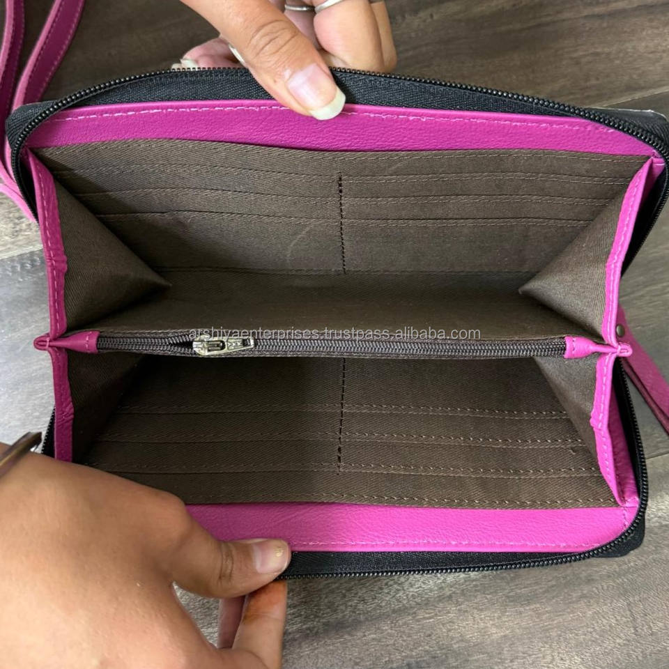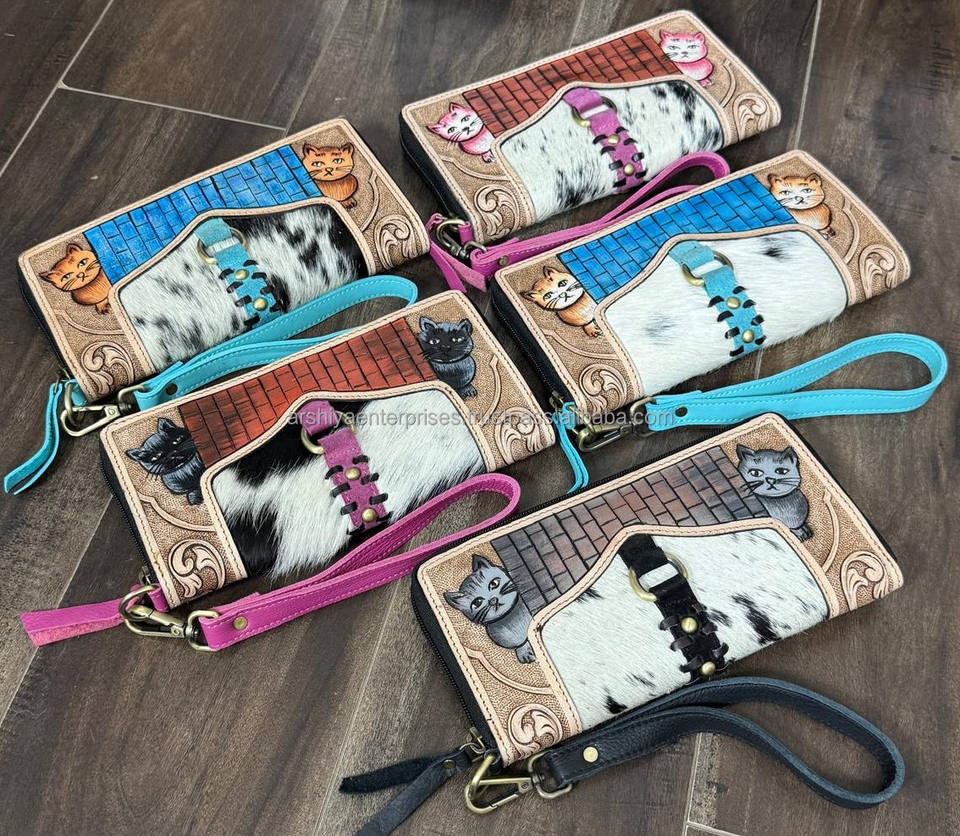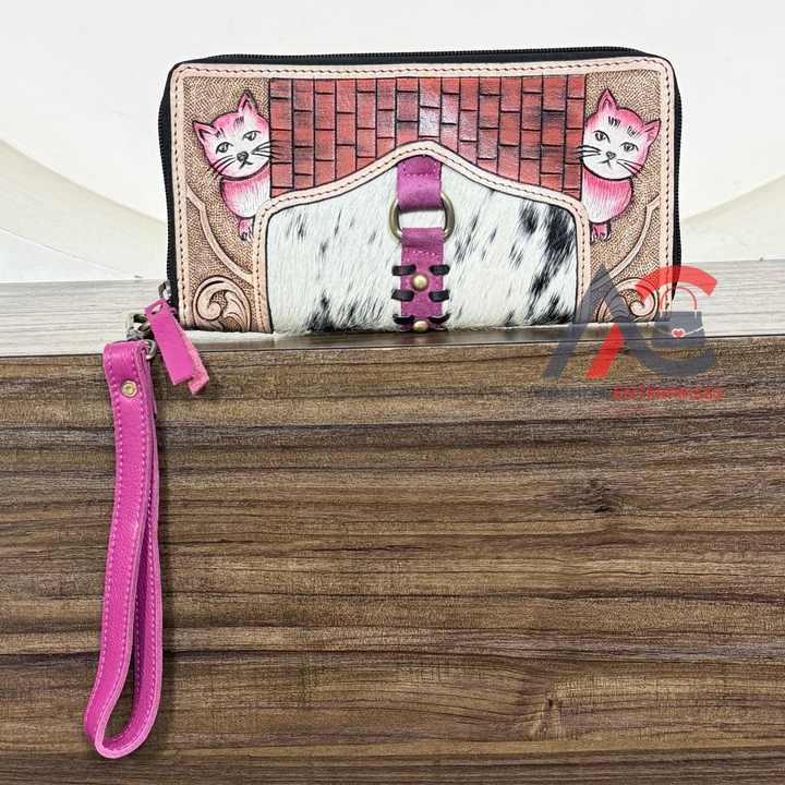 2026 Large Capacity Western-Style Hand-tooled Leather Wristlet Clutch Purse for Women's Trending Luxury Designer Cowhide Wallets