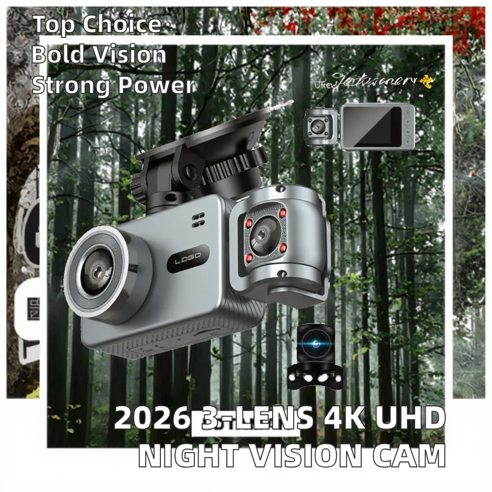 กล้องติดรถยนต์รุ่นใหม่ล่าสุดปี 2026 ความละเอียด 4K+720p 3 เลนส์ พร้อมระบบมองเห็นในเวลากลางคืน หน้าจอ 2.0 นิ้ว ระบบ G-sensor โหมดจอดรถ UHD WIFI รองรับ MicroSD มุมมองกว้าง 170 องศา