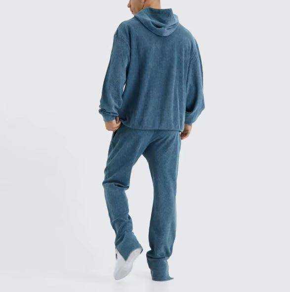 ชุดวอร์มผ้าฟลีซลำลองสีพื้นแบบมีฮู้ด ดีไซน์ล่าสุดปี 2026 คุณภาพสูง เป็นมิตรกับสิ่งแวดล้อม ผลิตจากผ้าฝ้าย 100% ซักแบบแอซิดวอช เหมาะสำหรับฤดูหนาว