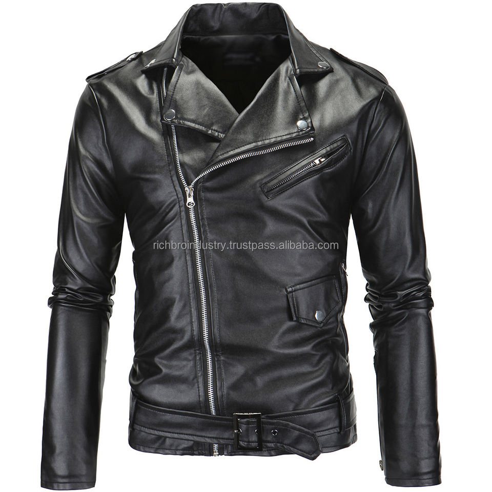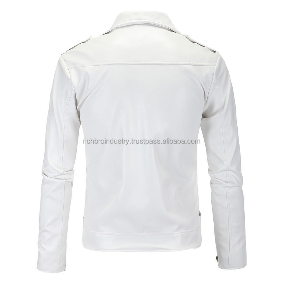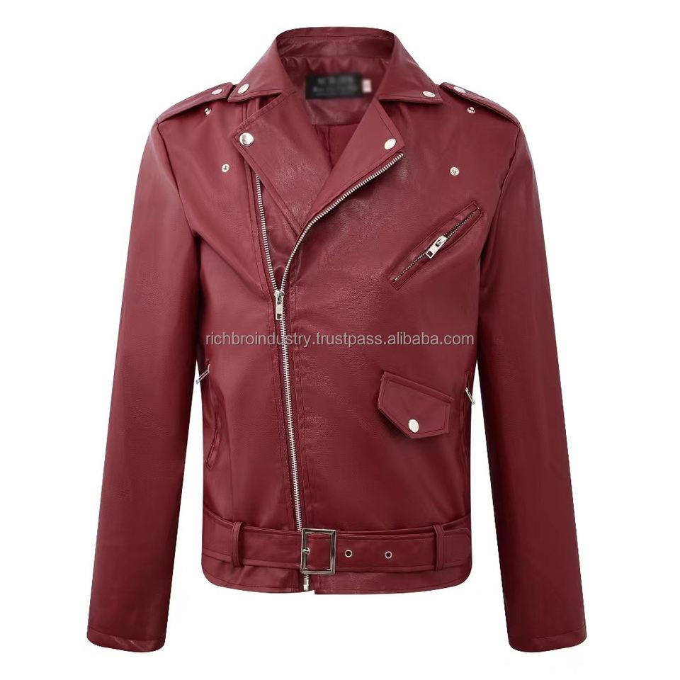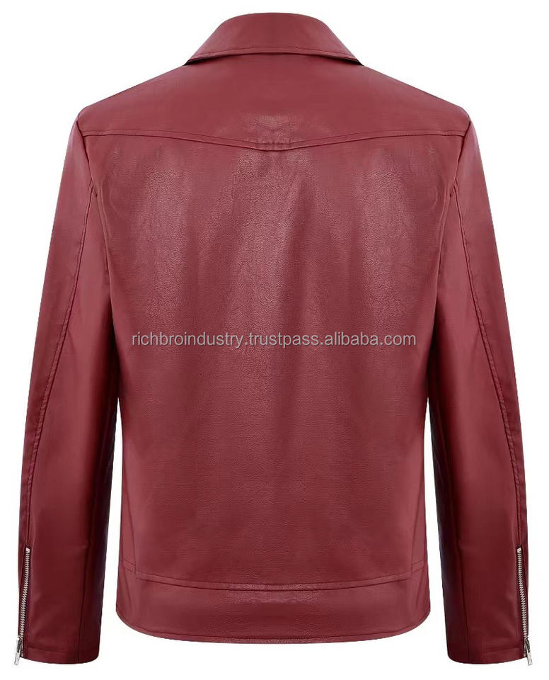 2026 Latest Design Mandarin Collar Zipper up PU Leather Motorcycle Slim Fit Winter Outdoor Bomber Jacket