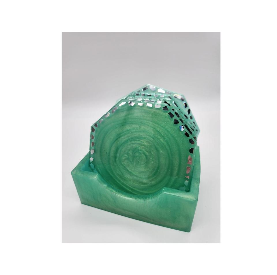ชุดจานรองแก้วเรซิ่นดีไซน์ล่าสุดปี 2026 หรูหรา 4 ชิ้น พร้อมที่วางเรซิ่น สีสันเฉพาะตัว สามารถสั่งทำได้ ใช้สำหรับรองแก้วน้ำชา