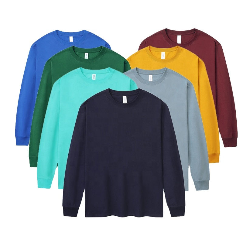เสื้อยืดแขนยาวผู้ชายผ้าฝ้ายคุณภาพสูงรุ่นล่าสุดปี 2026 ดีไซน์เรียบง่าย คอทรงโอ ผลิตด้วยวิธีการถักทอ สามารถปรับแต่งได้