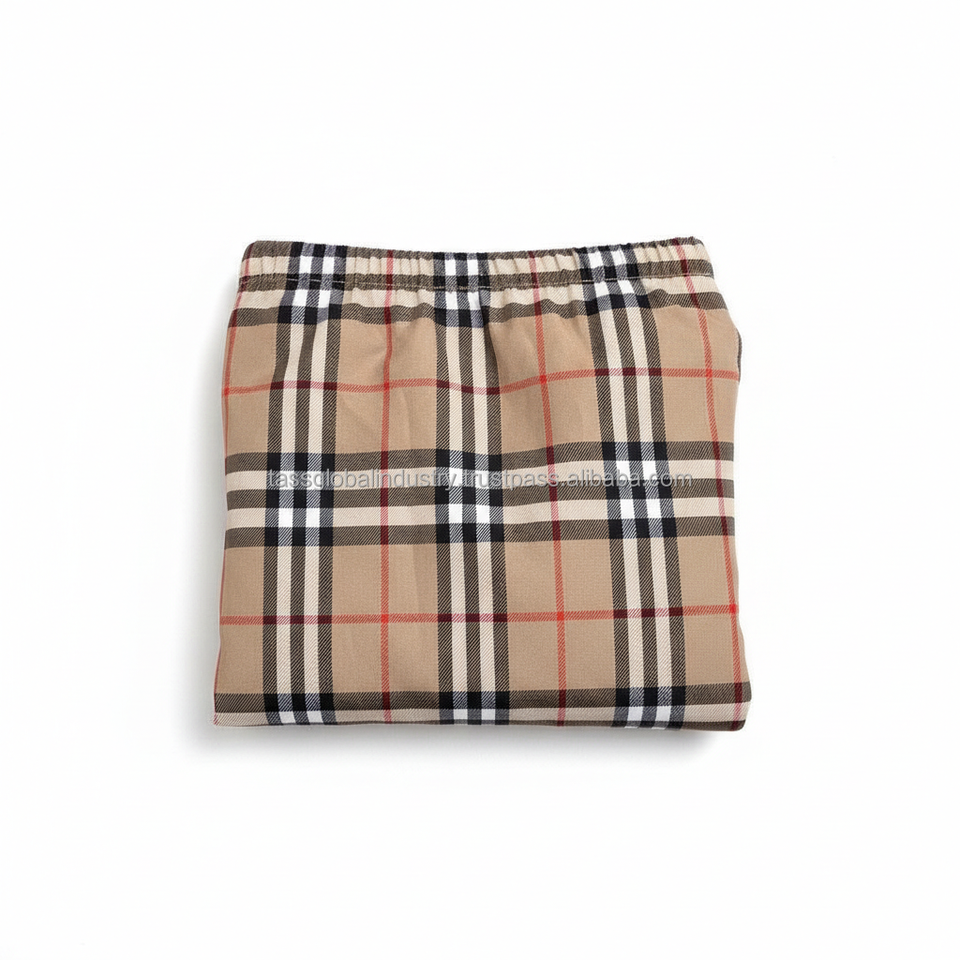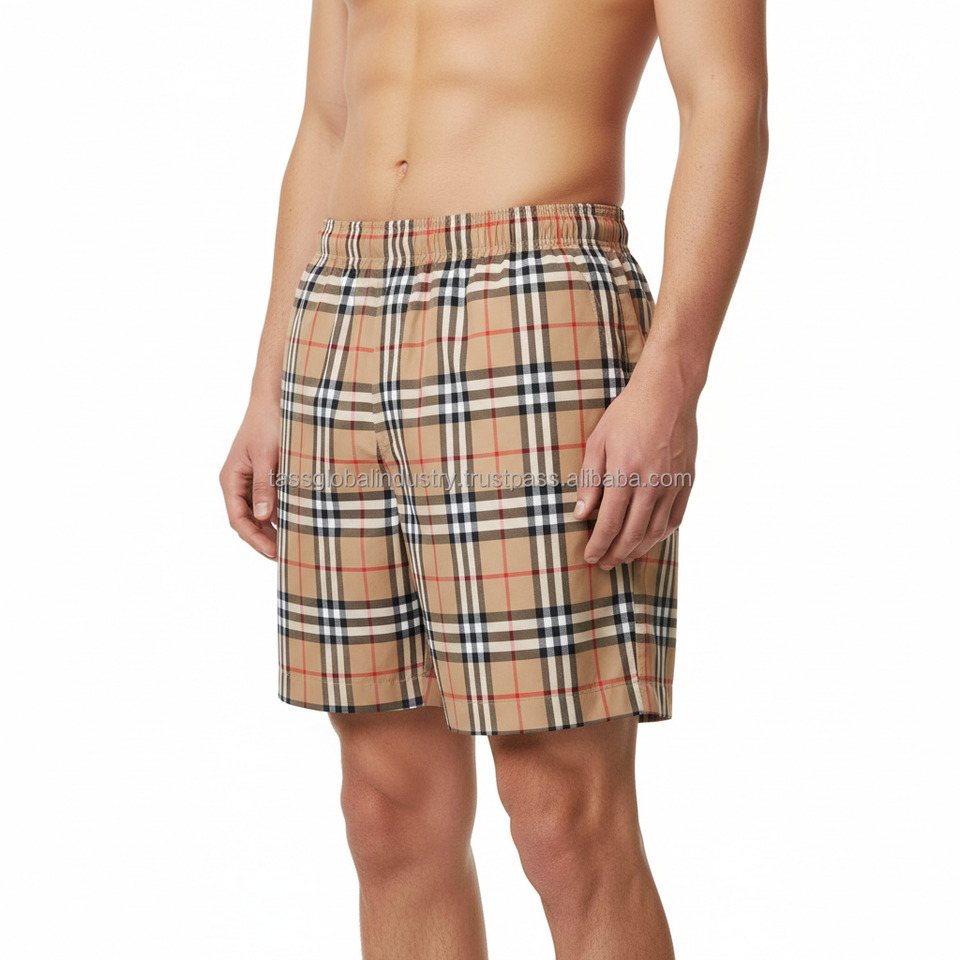 กางเกงขาสั้นลำลองผู้ชายลายสก็อตสีเบจสุดหรู ปี 2026 คุณภาพสูง ลายตาราง เหมาะสำหรับใส่ไปเที่ยวทะเลในฤดูร้อน มีเชือกผูกเอว แฟชั่นกางเกงขาสั้น
