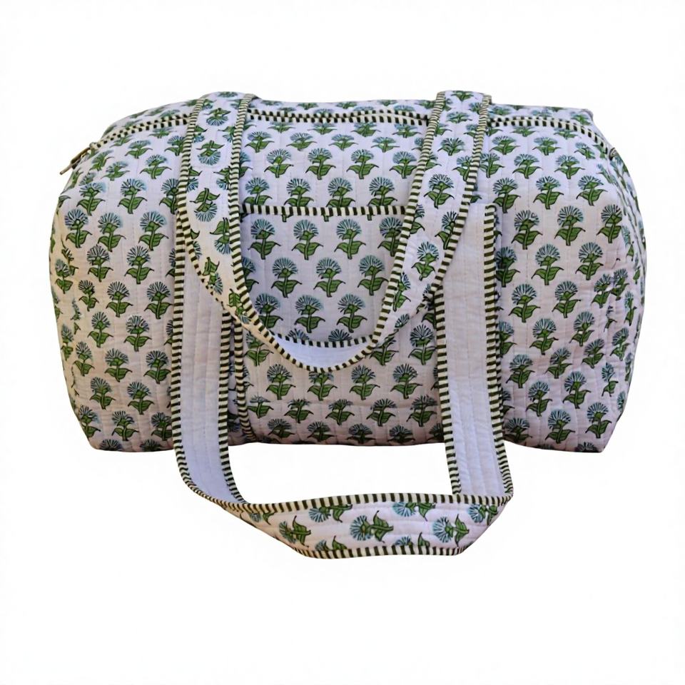 กระเป๋าเดินทางลายดอกไม้พิมพ์ลายบล็อกสำหรับผู้หญิงสุดหรู ปี 2026 ทำด้วยมือ ซักได้ ใช้ได้ทั้งไปเที่ยวทะเล พักค้างคืน ช้อปปิ้ง หรือใช้เป็นของขวัญ