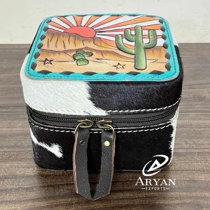 กระเป๋าใส่เครื่องประดับหนังวัวลายวาดมือรูปต้นกระบองเพชรยามเช้า งานเอ็กซ์โปเดือนมีนาคม ปี 2026 สไตล์ตะวันตกแบบใหม่ พกพาสะดวก