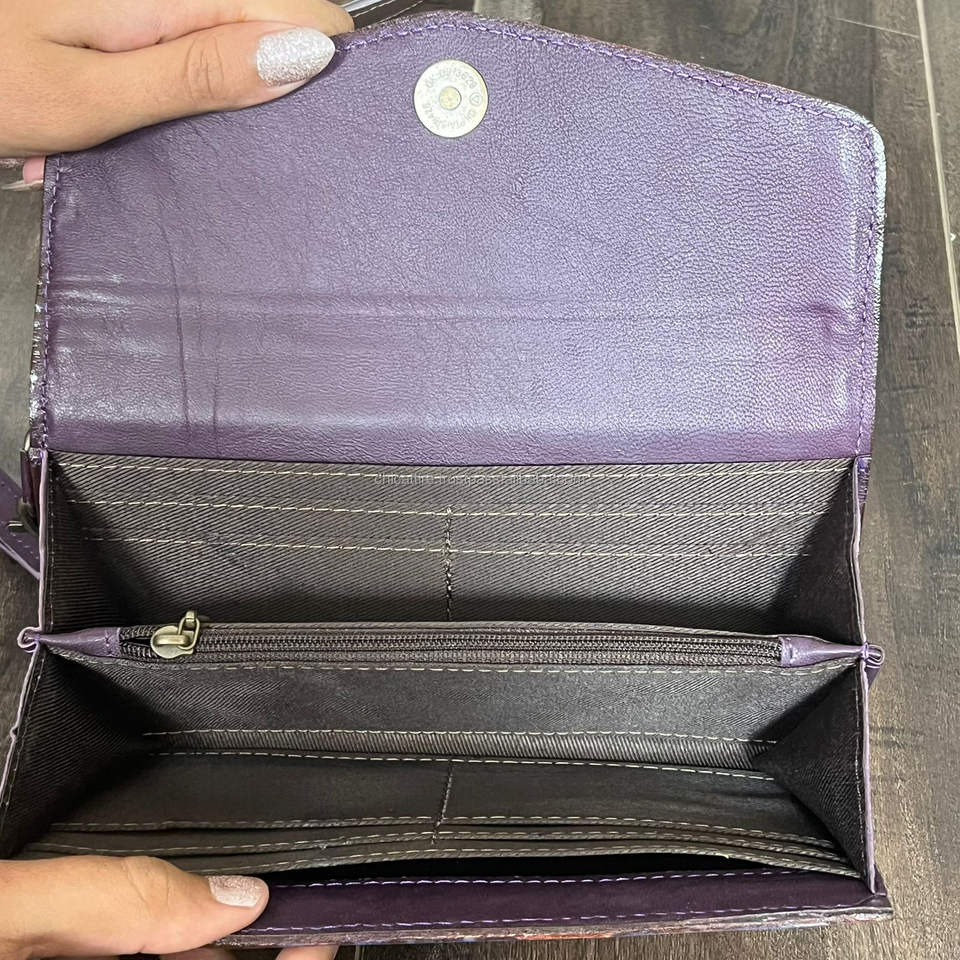 กระเป๋าสตางค์คล้องมือหนังลายตารางหมากรุกทำมือ