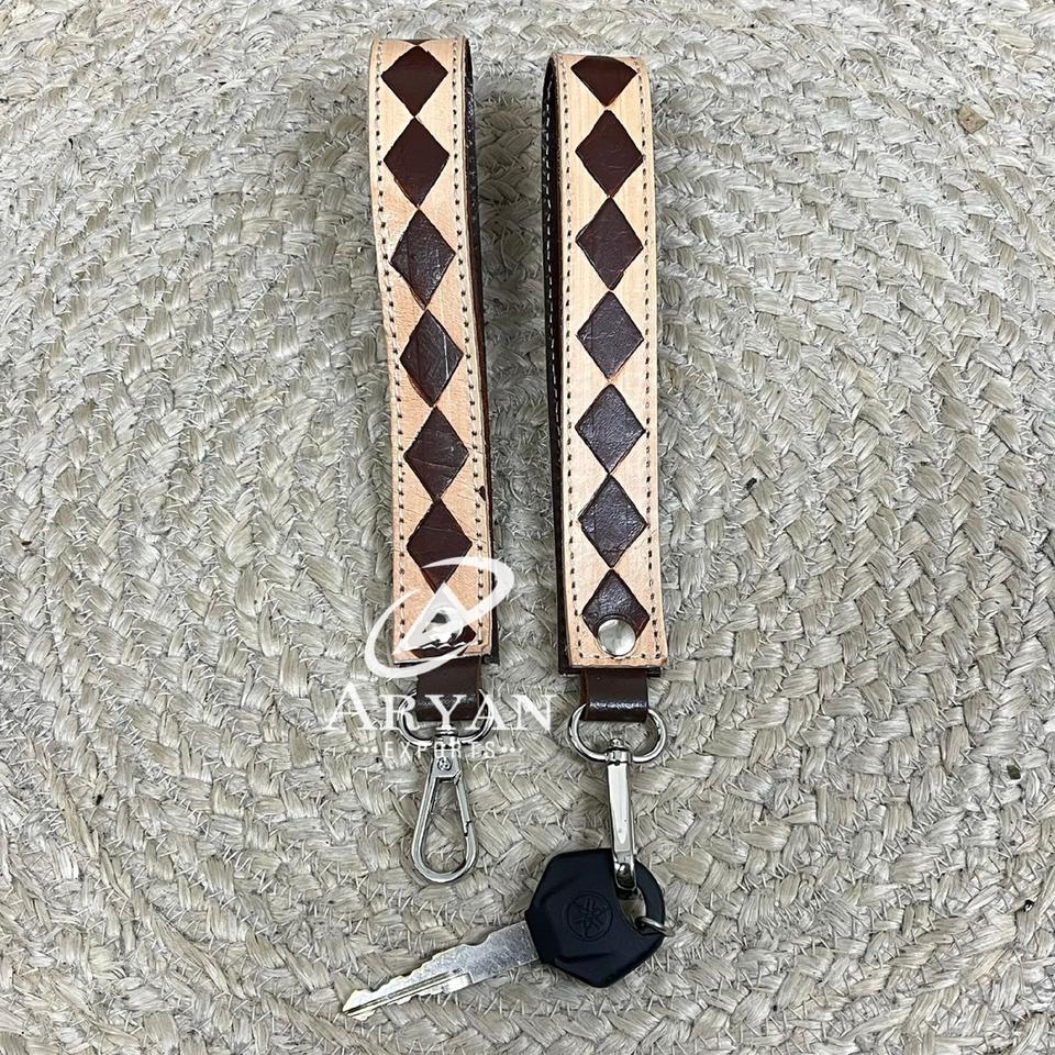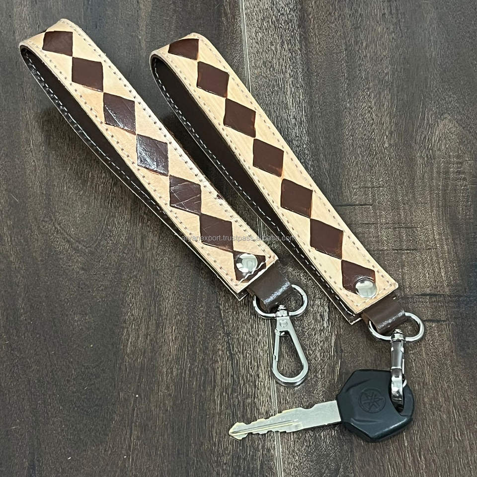 Product Name:Genuine Checkered Leather Wristlet Keychain