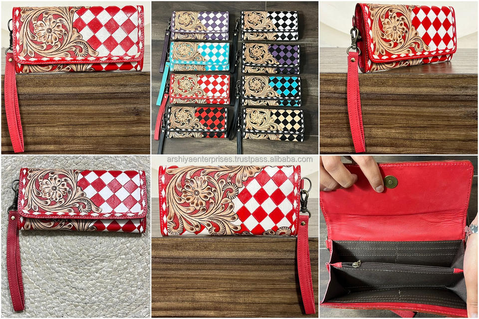 กระเป๋าสตางค์หนังวัวลายดอกไม้สไตล์โบฮีเมียนวินเทจ งานแฮนด์เมด พร้อมสายคล้องมือ รุ่นยาว สำหรับใส่เงินสด ใช้ได้ทุกวัน งานเอ็กซ์โปเดือนมีนาคม ปี 2026