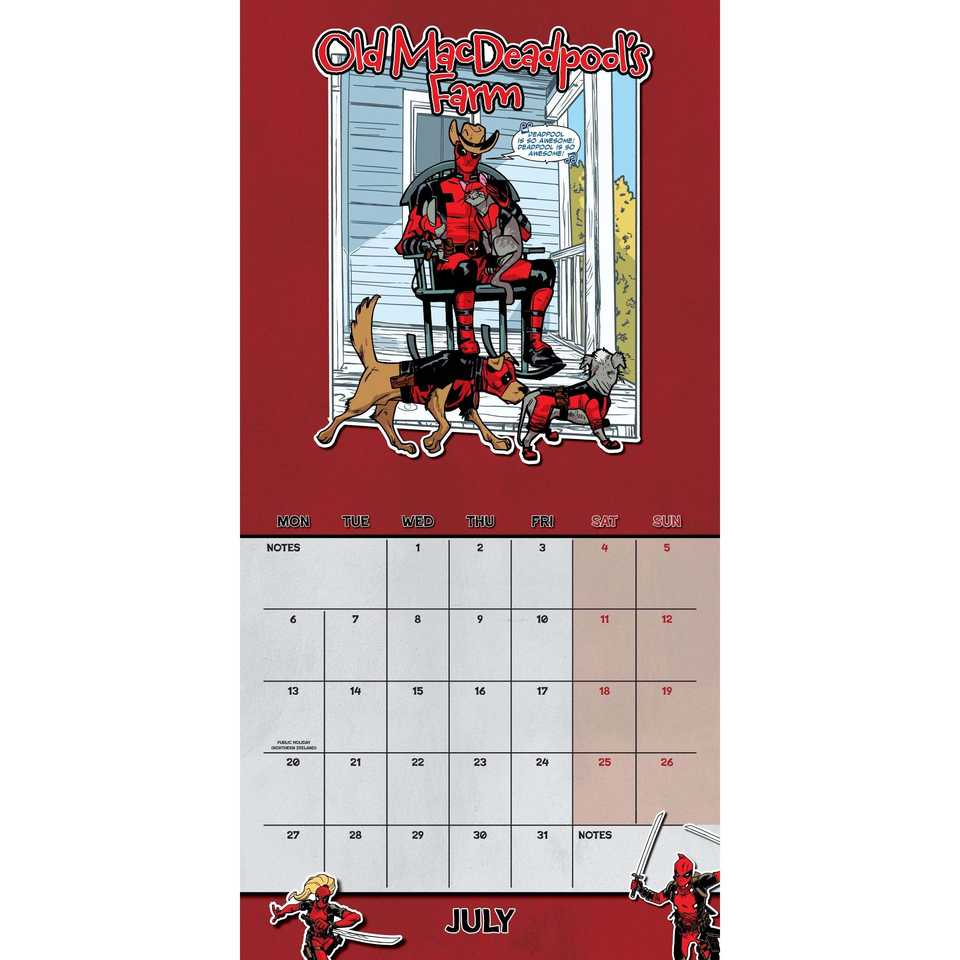 ปฏิทินตั้งโต๊ะ Marvel Deadpool ปี 2026 และสมุดวางแผนสำหรับใช้ในสำนักงานและที่บ้าน