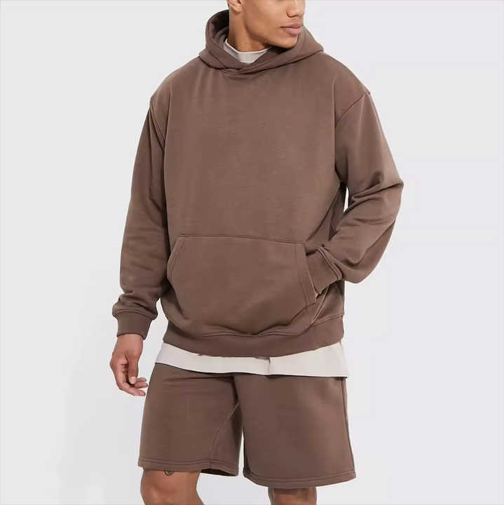 ชุดเซ็ตฮู้ดดี้และกางเกงขาสั้นผู้ชาย ฤดูใบไม้ร่วง ปี 2026 สีพื้น ผ้าฝ้าย 100% สไตล์ลำลอง สตรีทแวร์ ระบายอากาศได้ดี รับผลิตตามแบบ OEM