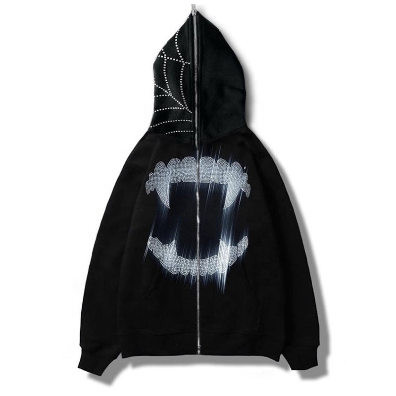เสื้อฮู้ดซิปหน้าเต็มตัวสำหรับผู้ชาย ปี 2026 | เสื้อผ้าสตรีทแวร์ดีไซน์ประดับเพชร | ผู้ผลิตเสื้อฮู้ดซิปพร้อมโลโก้ตามสั่ง