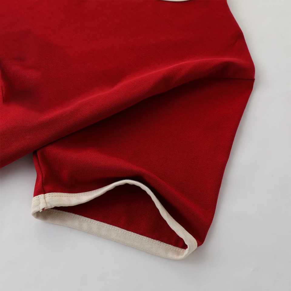 เสื้อยืดคอกลมแขนสั้นผู้ชายปี 2026 ผ้าฝ้าย 100% ระบายอากาศได้ดี คอเสื้อตัดสี เสื้อยืดแบบถักเป็นมิตรกับสิ่งแวดล้อม เสื้อผ้าสไตล์วิทยาลัย