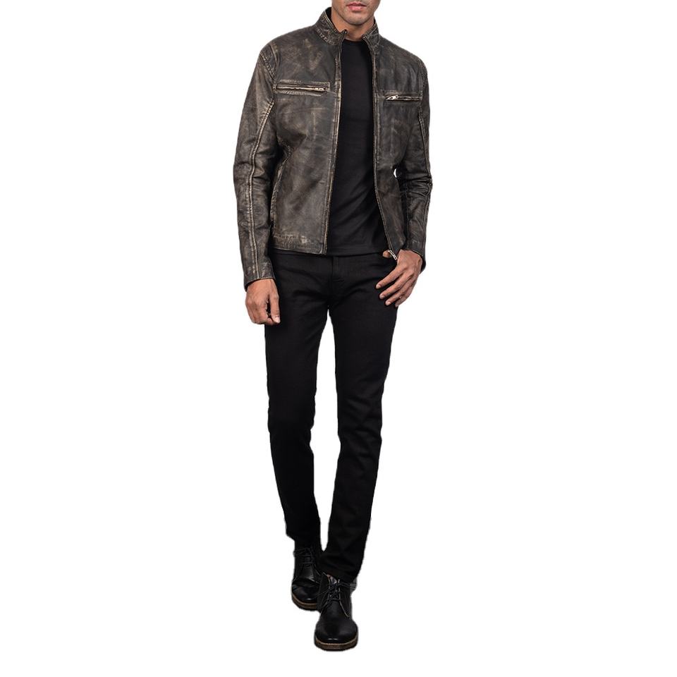2026 Men Vintage Brown Leather Biker Jacket Classic Distressed Motorcycle PU Jacket with Zipper Front and Stand Collar
