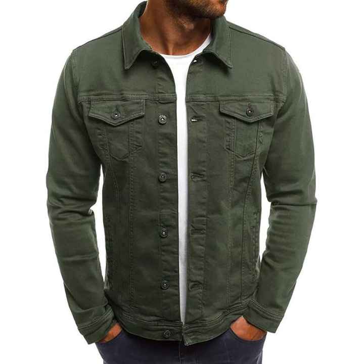 แจ็คเก็ตยีนส์ผู้ชายทรงสลิมฟิตสีเขียว รุ่นคลาสสิค ปี 2026 ไซส์ XL แฟชั่นเสื้อโค้ทยีนส์