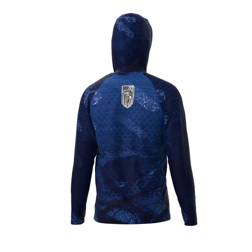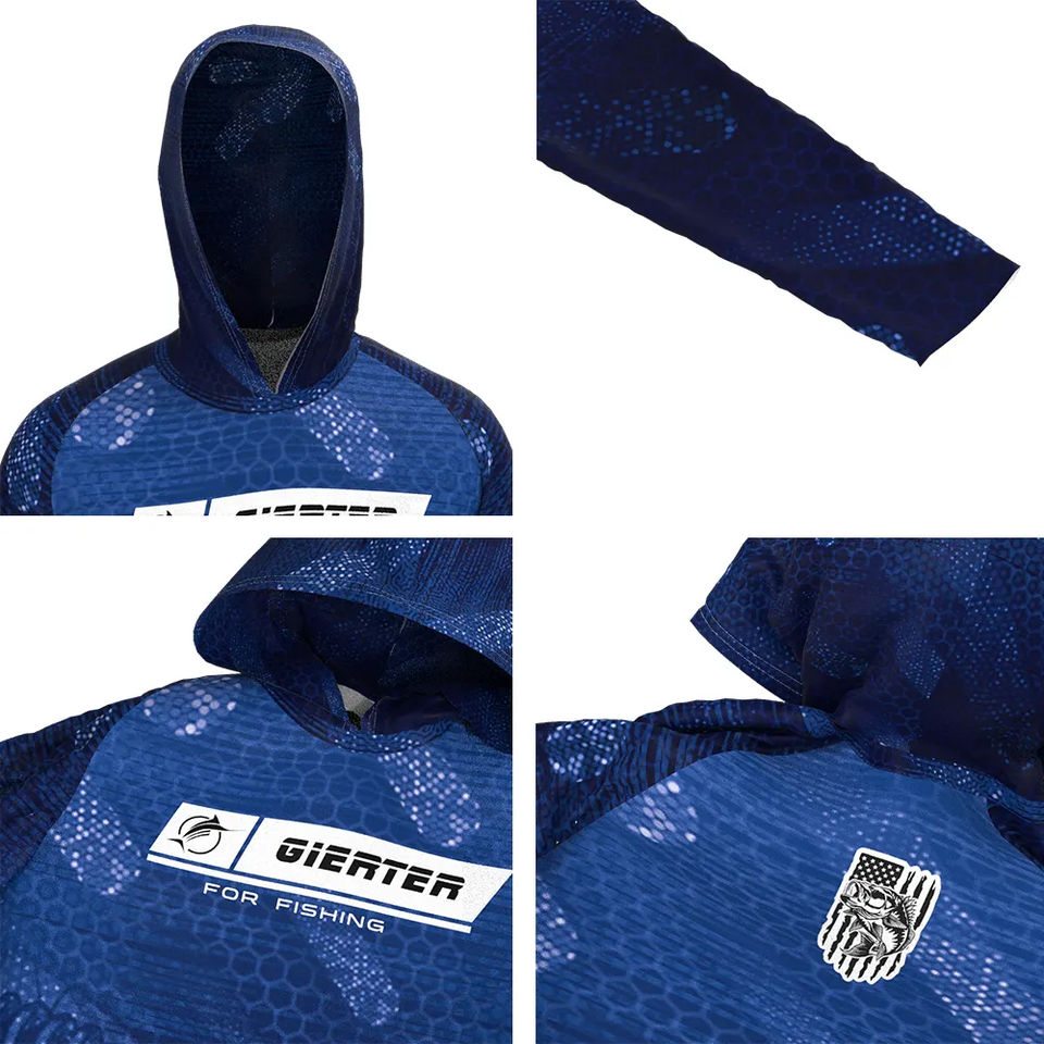 เสื้อตกปลาแขนยาวสำหรับผู้ชายปี 2026 พร้อมโลโก้สั่งทำพิเศษ มีฮู้ดพร้อมผ้าคลุมคอแบบดึงขึ้นได้ ป้องกันแสงแดด UPF50+ เสื้อฮู้ดตกปลา