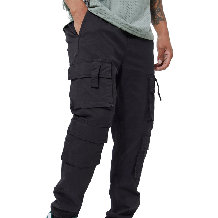 กางเกงคาร์โก้ผ้าแคนวาสเนื้อฝ้าย 100% น้ำหนักเบาสำหรับผู้ชาย ปี 2026 เอวกลาง ยืดหยุ่นสูง มีกระเป๋าหลายช่อง ทรงสอบ ปลายขาจั๊มพ์ พร้อมปักโลโก้ตามสั่ง