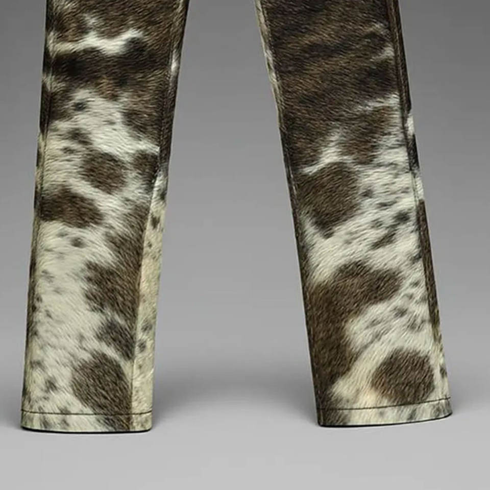 กางเกงหนังวัวแท้พรีเมียมสำหรับผู้ชาย ปี 2026 ทรงขาบาน เอวกลาง ยืดหยุ่นได้ ผลิตโดย Shenra Industry ดีไซน์โดดเด่นมีสไตล์