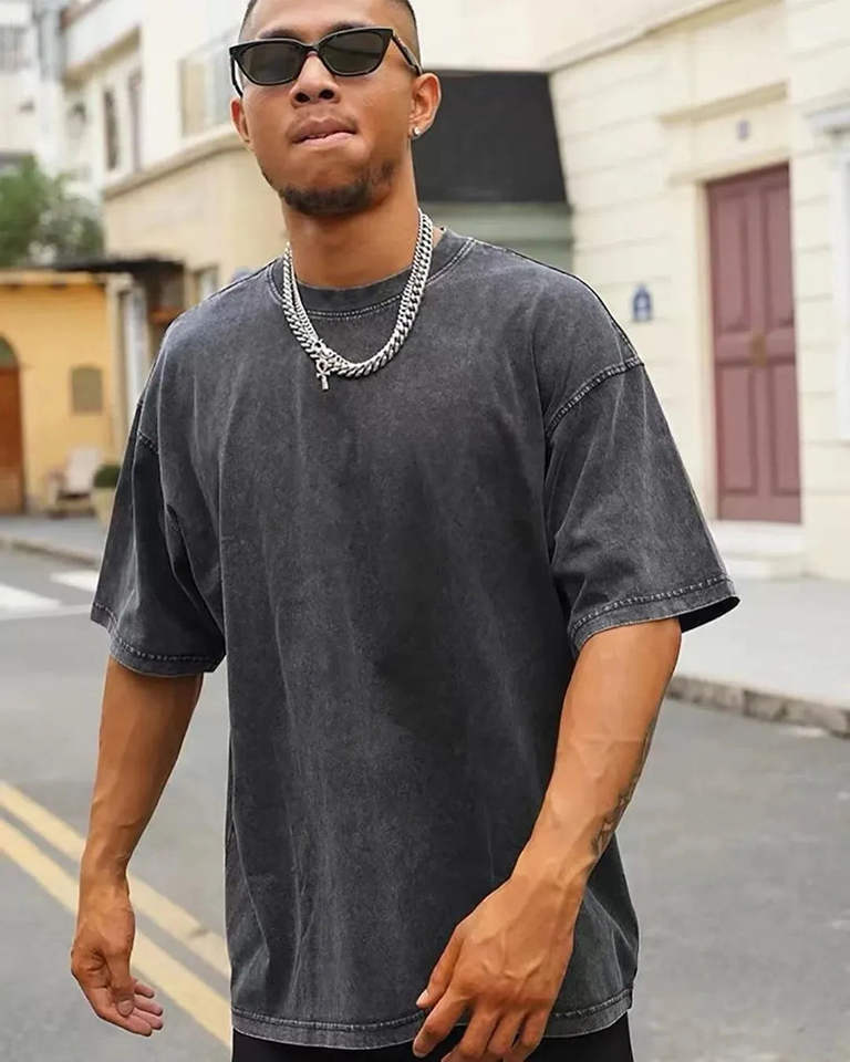 เสื้อยืดเปล่าสตรีทแวร์ผ้าวอร์สเตดเนื้อนุ่ม แห้งเร็ว ทรงหลวม สีพื้น คุณภาพพรีเมียมสำหรับผู้ชาย ปี 2026 ผลิตจากผ้าฝ้าย 100%