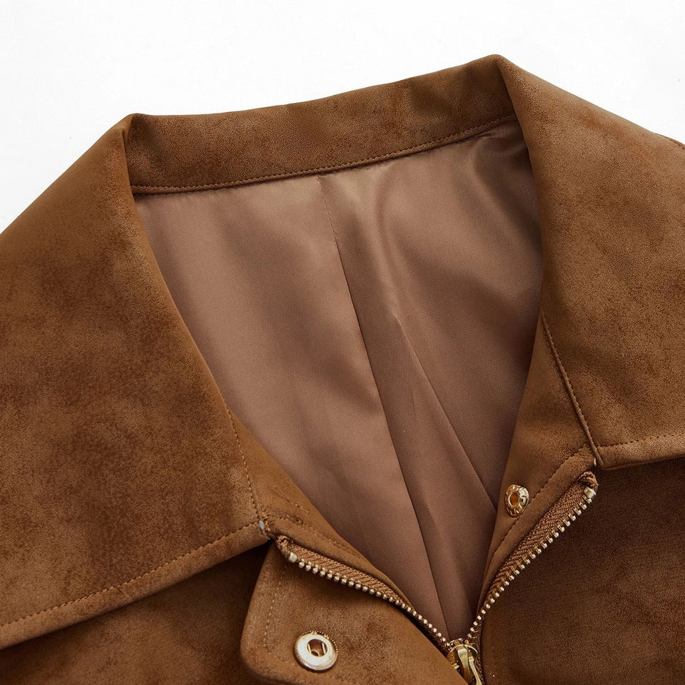 เสื้อแจ็คเก็ตมอเตอร์ไซค์ผู้ชายแบบปกติ ปี 2026 สีน้ำตาล แบบซิป มีปก เสื้อคลุมตัวนอก มีกระเป๋า สไตล์สตรีทแวร์ ระบายอากาศได้ดี ผลิตจากผ้าฝ้ายแท้
