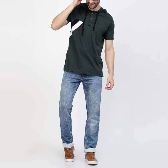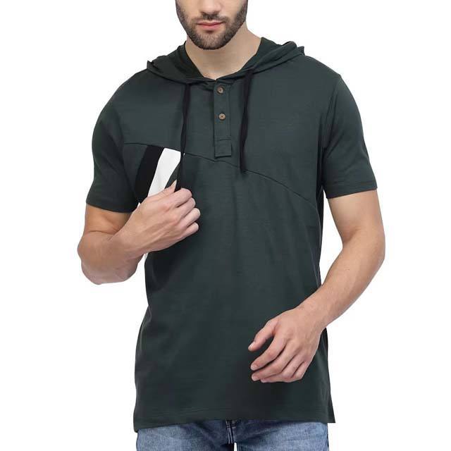2026 Men's Regular Fit Hooded T-Shirt Short Sleeves Hooded Collar Casual Style Solid Pattern Embroidered 100% Cotton Fleece