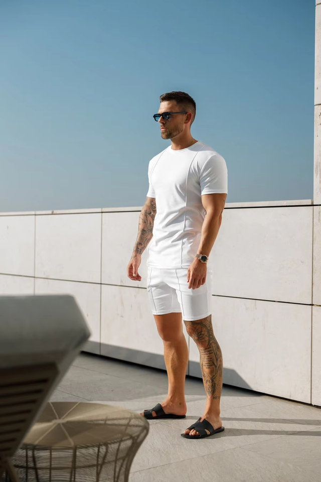 เสื้อยืดผู้ชายปี 2026 ผ้าโพลีเอสเตอร์/คอตตอนถัก แขนสั้น สไตล์วินเทจ สำหรับฤดูร้อน แบบ ODM ด้านหน้า