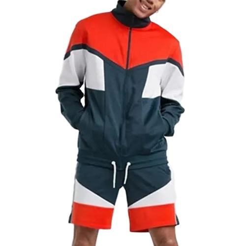 ชุดเซ็ตสองชิ้นสำหรับผู้ชาย ปี 2026 เสื้อแจ็คเก็ตกันลม กางเกงขาสั้น ชุดวอร์ม สตรีทแวร์ สีพื้น สะท้อนแสง ซิป โพลีเอสเตอร์ น้ำหนักเบา 2026