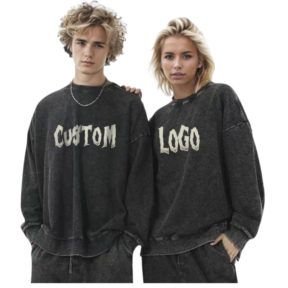 เสื้อสเวตเชิ้ตผ้าฝ้าย 100% ล้างสีแบบวินเทจ สำหรับผู้ชายและผู้หญิง ปี 2026 คุณภาพพรีเมียม นุ่ม สบาย ลำลอง ทันสมัย ทรงโอเวอร์ไซส์ สไตล์สตรีทแวร์