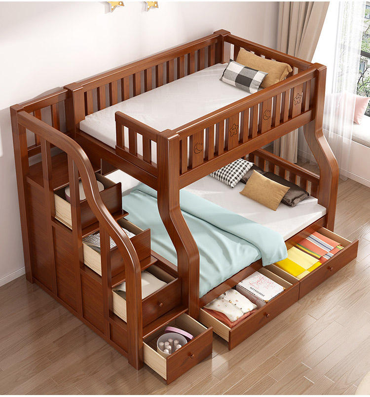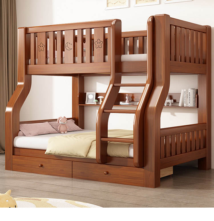 เตียงสองชั้นทันสมัยปี 2026 เตียงเด็กไม้จริงขายดี เตียงสองชั้นสีเทาสำหรับหอพัก