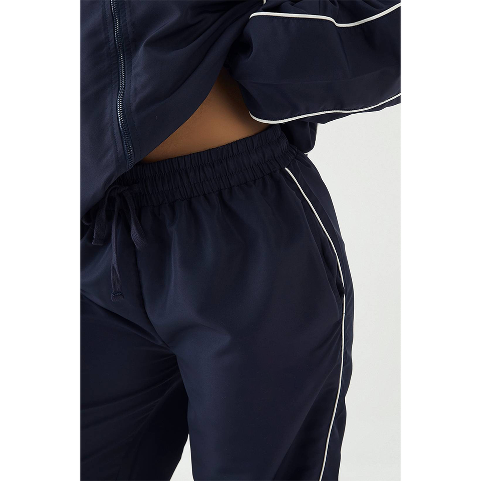 ชุดวอร์มกันลมผ้าไนลอนยับแบบเรียบง่าย ปี 2026 พร้อมซับในตาข่าย แต่งขอบด้วยผ้า ชุดกีฬาฟุตบอลสำหรับผู้หญิง แจ็คเก็ตซิป พร้อมกางเกงจ็อกเกอร์ทรงหลวม ชุด 2 ชิ้น