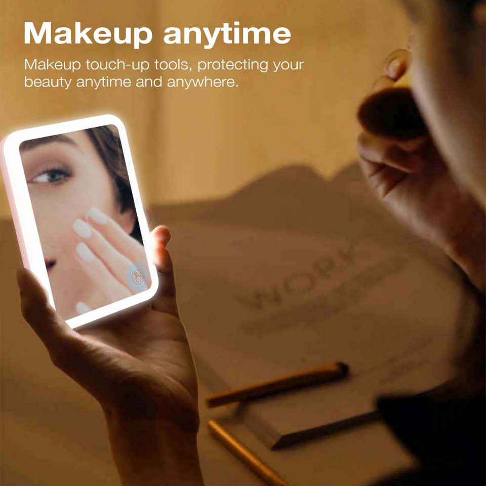 พาวเวอร์แบงค์ 3 in 1 รุ่นใหม่ ปี 2026 พร้อมกระจกแต่งหน้า LED สีรุ้ง ความจุ 5000mAh