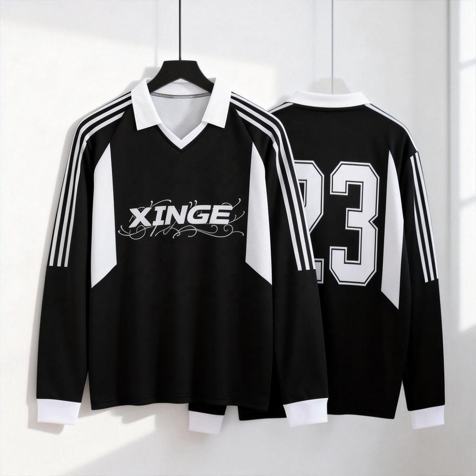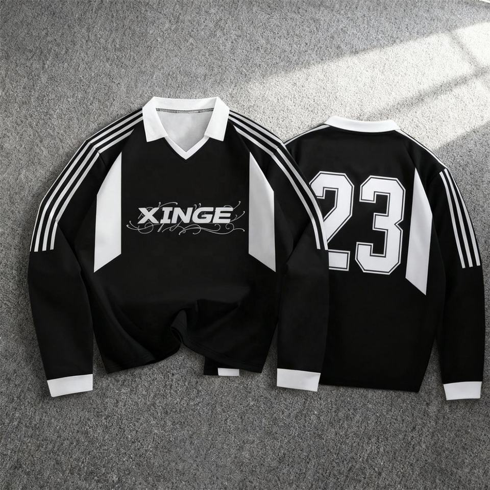 เสื้อโปโลผู้ชายสไตล์อเมริกันใหม่ปี 2026 แฟชั่นทันสมัย ลายทางแบบปะติดปะต่อ แขนยาว ผ้าถักลำลอง