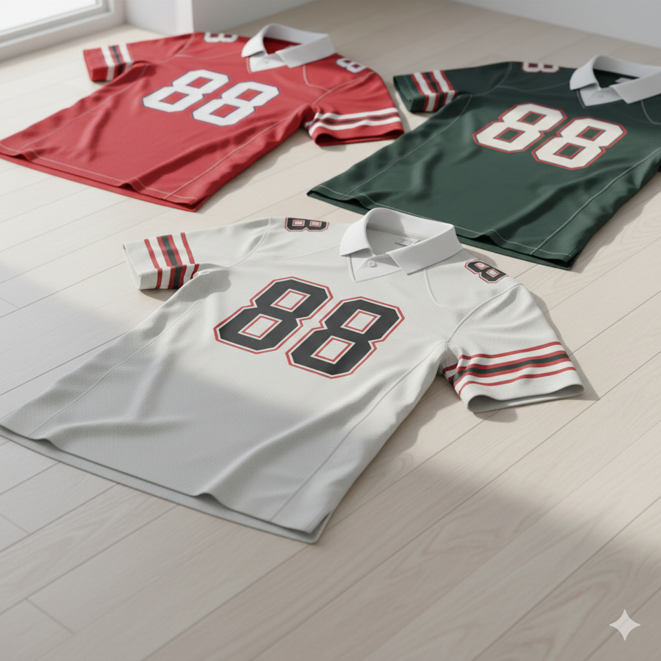 เสื้ออเมริกันฟุตบอลรุ่นใหม่ปี 2026 - ปักชื่อและหมายเลขผู้เล่นตามสั่ง - ชุดยูนิฟอร์มตาข่ายเบิร์ดอายคุณภาพพรีเมียม