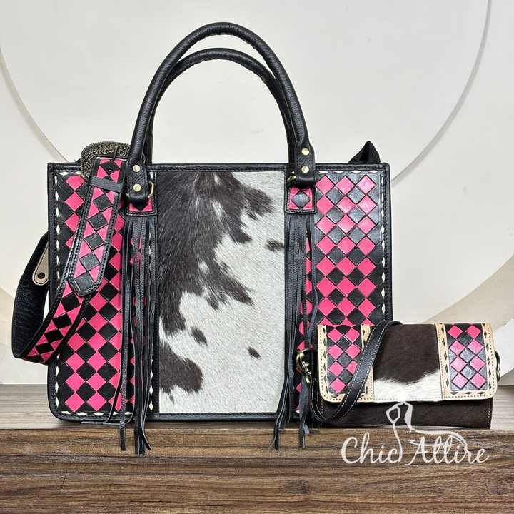 ชุดเซ็ตหนังลายตารางหมากรุกทำมือเข้าชุดกัน 2 ชิ้น