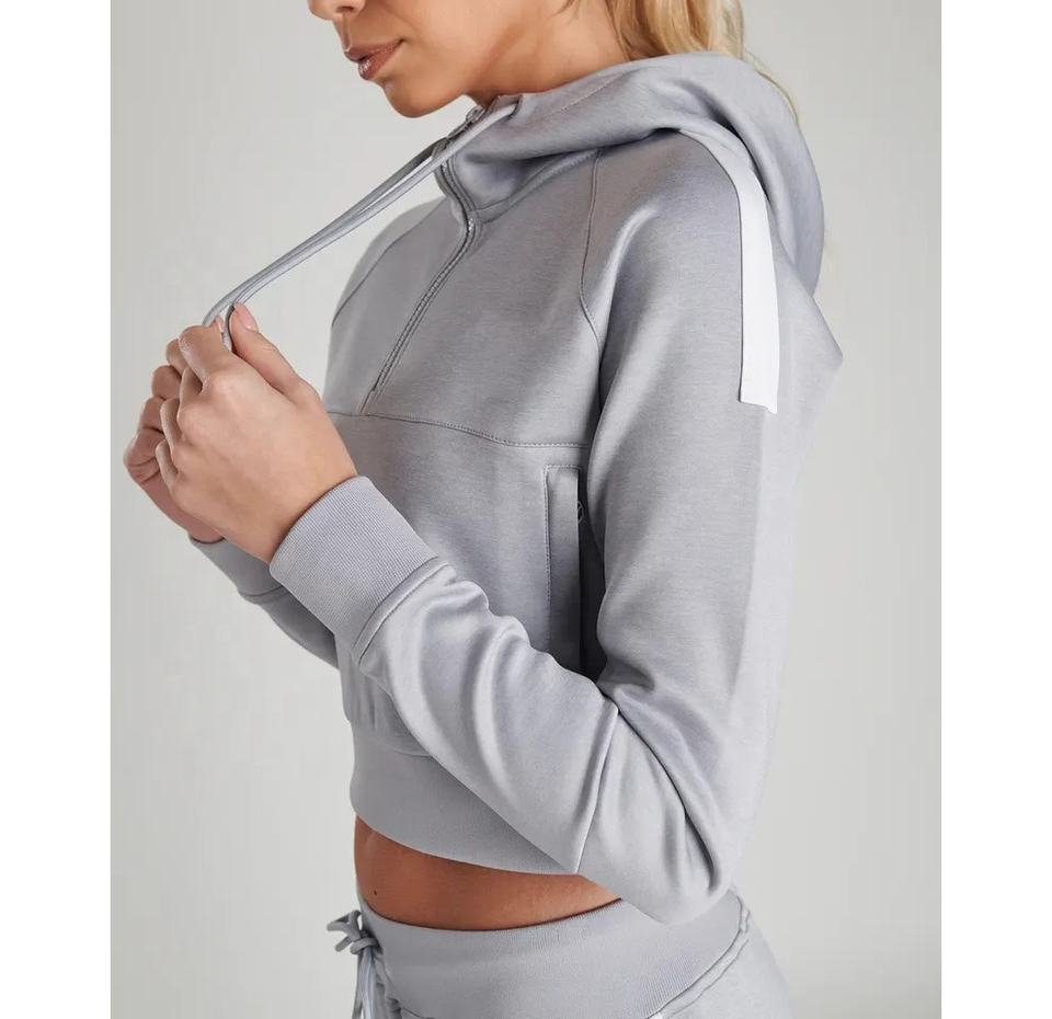 เสื้อฮู้ดครอปแขนยาวผู้หญิง ผ้าฝ้าย/ใยไผ่ รุ่นใหม่ปี 2026 ระบายอากาศได้ดี คอปกแบบฮู้ด ผ้าแคนวาส