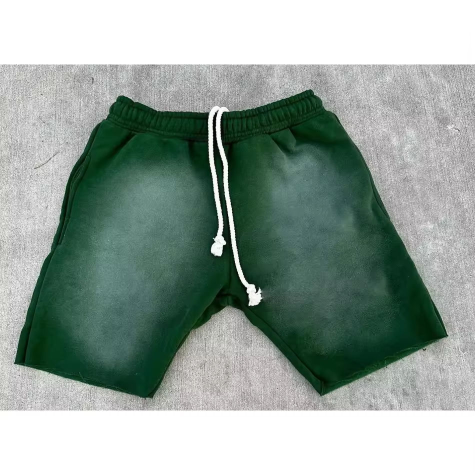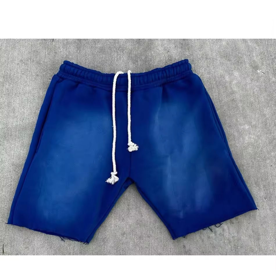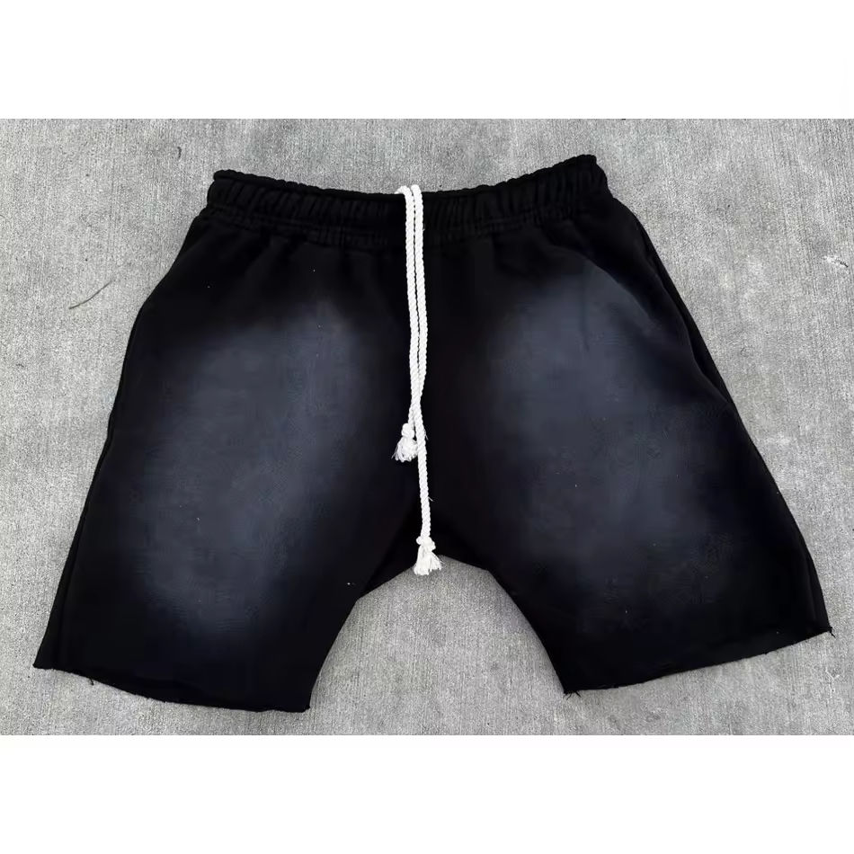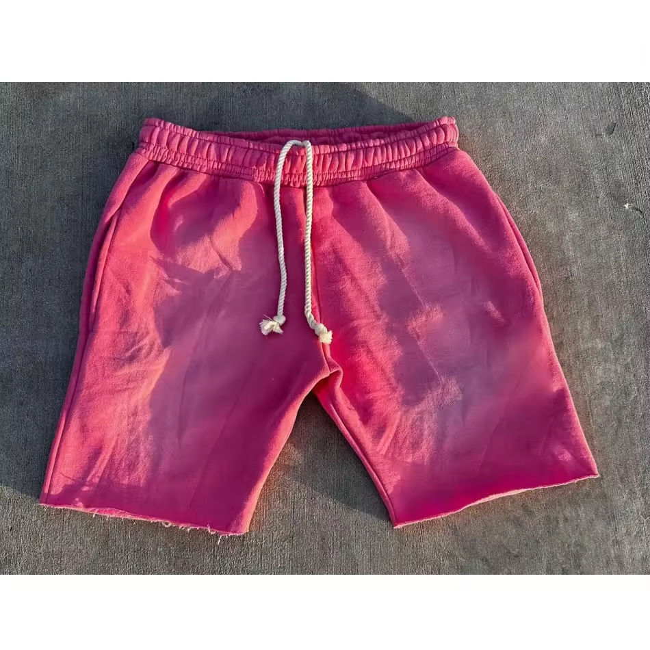 กางเกงขาสั้นผ้าฝ้ายหนานุ่ม 100% รุ่นใหม่ปี 2026 แบบผูกเชือก สไตล์ฝรั่งเศส สำหรับผู้ชาย แฟชั่นสตรีทแวร์ วินเทจ ล้างสีแบบแอซิดวอช