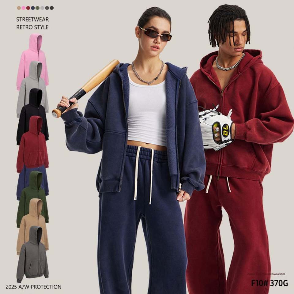 เสื้อแจ็คเก็ตฮู้ดซิปสั้นผ้ากำมะหยี่เนื้อนุ่ม 370 กรัม รุ่นใหม่ปี 2026 สำหรับผู้ชาย ลายบาติกแบบซัก