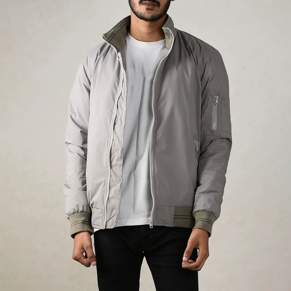 แจ็คเก็ตบอมเบอร์ผู้ชายลายใหม่ปี 2026 ผลิตในปากีสถาน ราคาถูก แจ็คเก็ตผ้าแคนวาสลำลอง คอตั้ง รับผลิตแบบ OEM