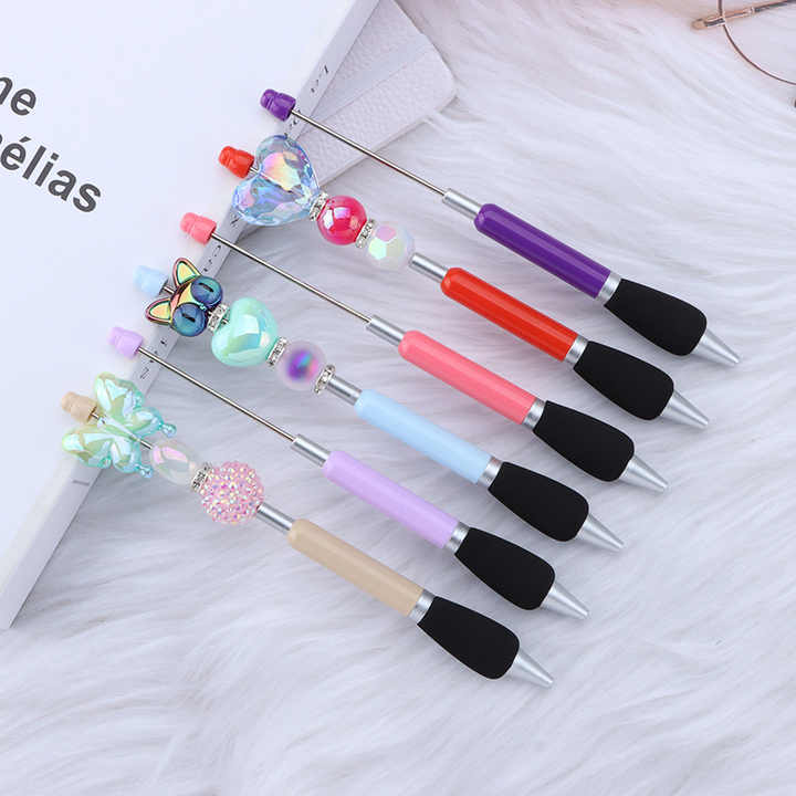 ปากกาลูกปัดพลาสติกแบบทำมือมาใหม่พร้อมด้ามจับฟองน้ำปากกาลูกลื่นน่ารักสีสำหรับ2026
