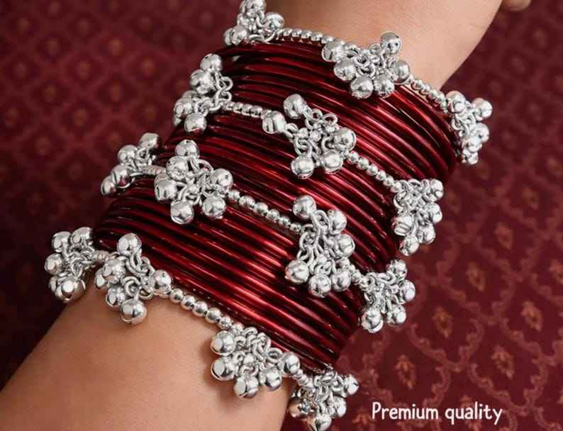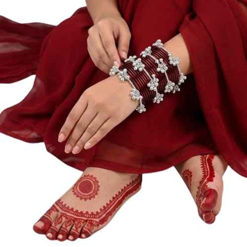 ชุดกำไลข้อมือเจ้าสาวอินเดียงานฝีมือระดับมืออาชีพ คอลเลคชั่นใหม่ปี 2026 ชุบเงิน ดีไซน์ทันสมัย รูปทรงเรขาคณิต สไตล์แคชเมียร์