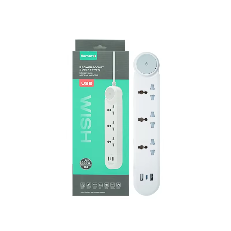 ปลั๊กพ่วงอเนกประสงค์รุ่นใหม่ปี 2026 3 ช่องเสียบ สายยาว 10A 2000W วัสดุ PP ทนไฟ พร้อมพอร์ต USB 2 ช่อง และพอร์ต USB-C 1 ช่อง