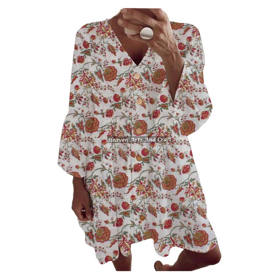 ชุดเดรสฤดูร้อน-ฤดูใบไม้ผลิ คอลเลคชั่นใหม่ปี 2026 ชุดเดรสผ้าฝ้าย ชุดเดรสแขนกระดิ่งลายพิมพ์บล็อก ชุดเดรสท็อปส์ฤดูร้อน-ฤดูใบไม้ผลิ