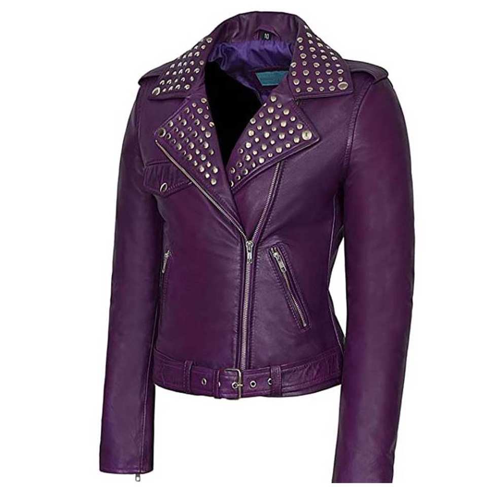 แจ็คเก็ตหนังผู้หญิงแบบครอปปี 2026 ระบายอากาศได้ดี แห้งเร็ว ดีไซน์ล่าสุด แจ็คเก็ตหนังแท้ประดับหมุดสั่งทำพิเศษ