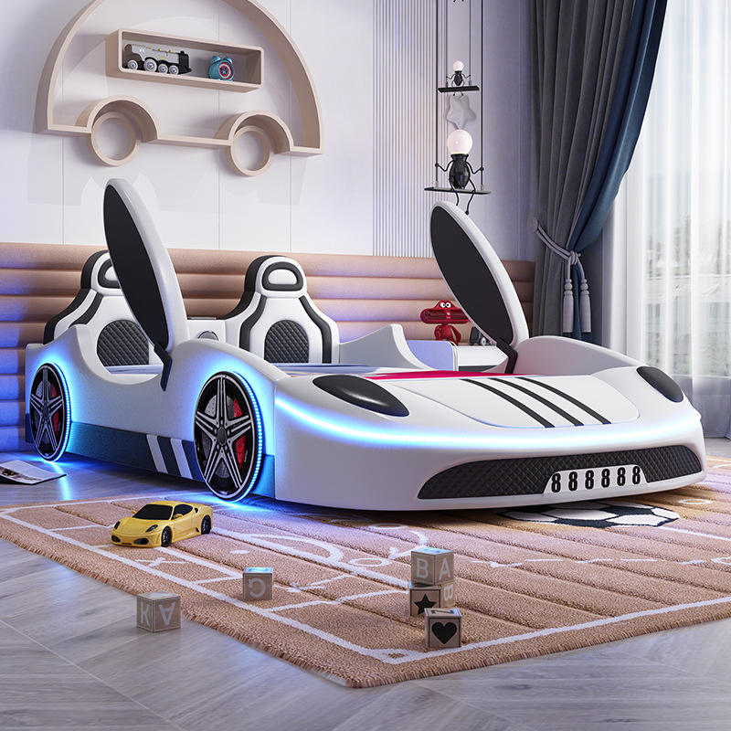 2026ใหม่เตียงเด็กบนรถดีไซน์การ์ตูนสร้างสรรค์พร้อมแผงกันลมและที่เก็บของธีมรถแข่งสำหรับเด็กวัยหัดเดิน