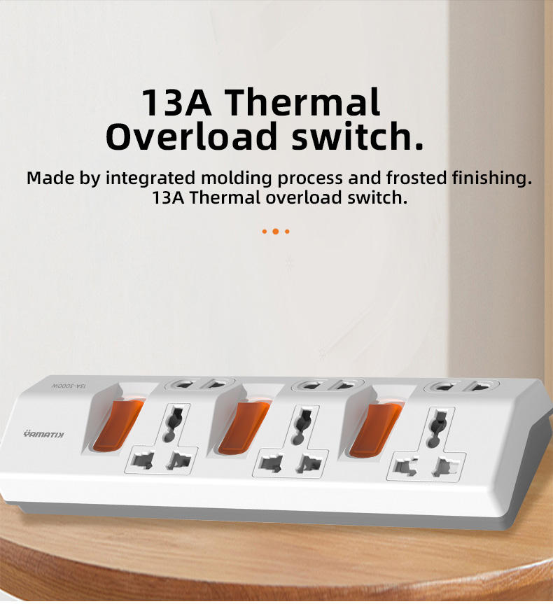 ปลั๊กพ่วงแบบพกพาขนาดกะทัดรัด รุ่นใหม่ ปี 2026 13A 3000W พร้อมระบบป้องกันไฟเกิน และช่องเสียบหลายช่อง พร้อมฝาครอบนิรภัย