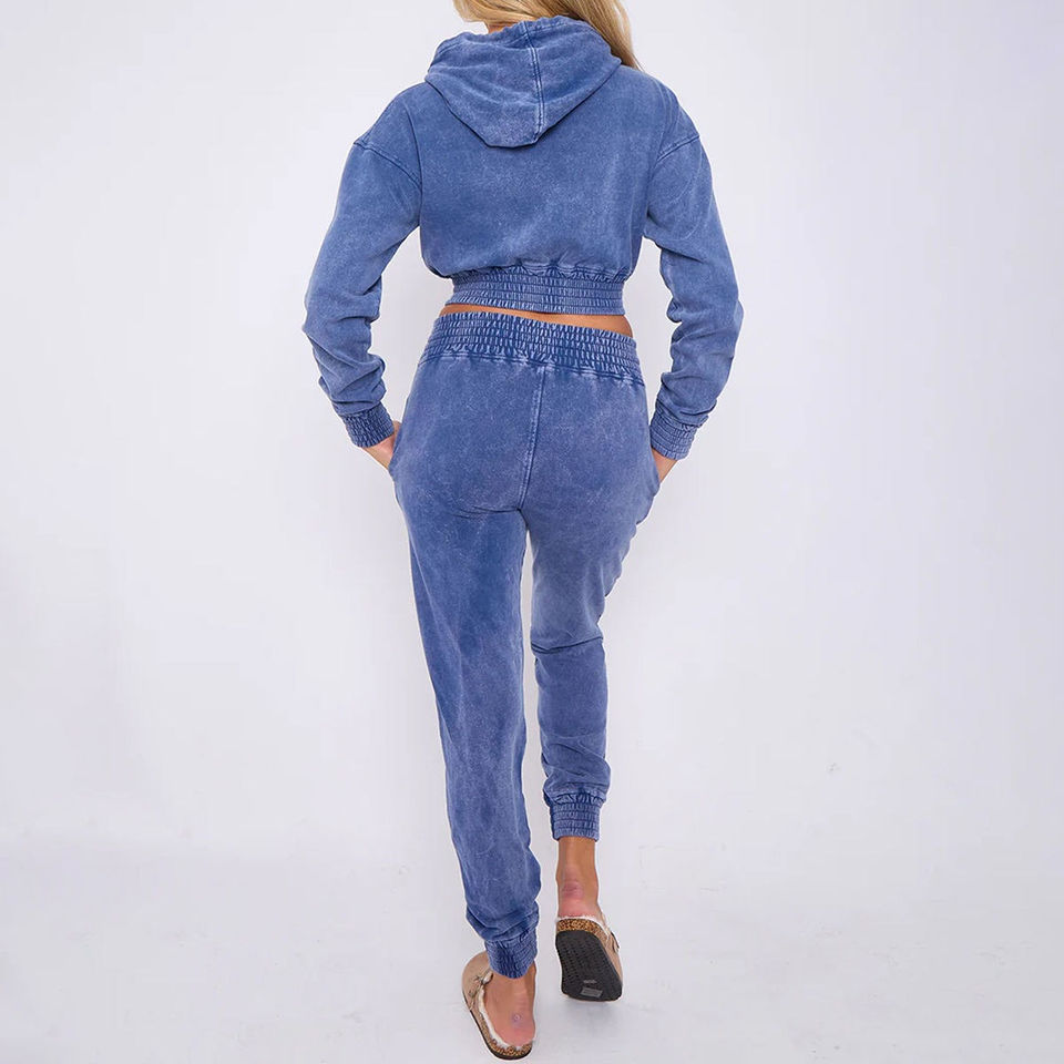 ชุดเซ็ตฮู้ดดี้ครอปและกางเกงขาสั้นลายวินเทจแบบแอซิดวอช รุ่นใหม่ปี 2026 ไซส์ XL สำหรับผู้หญิง ลายเรียบ ชุดวอร์มฤดูหนาว