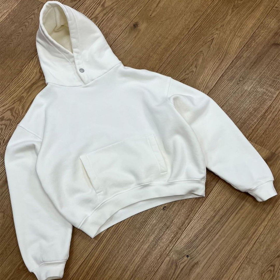 เสื้อฮู้ดดี้ขนแกะหนานุ่มสีขาวแบบสั่งทำพิเศษ OEM ปี 2026 พร้อมกระดุมแป๊ก มีหลายสี