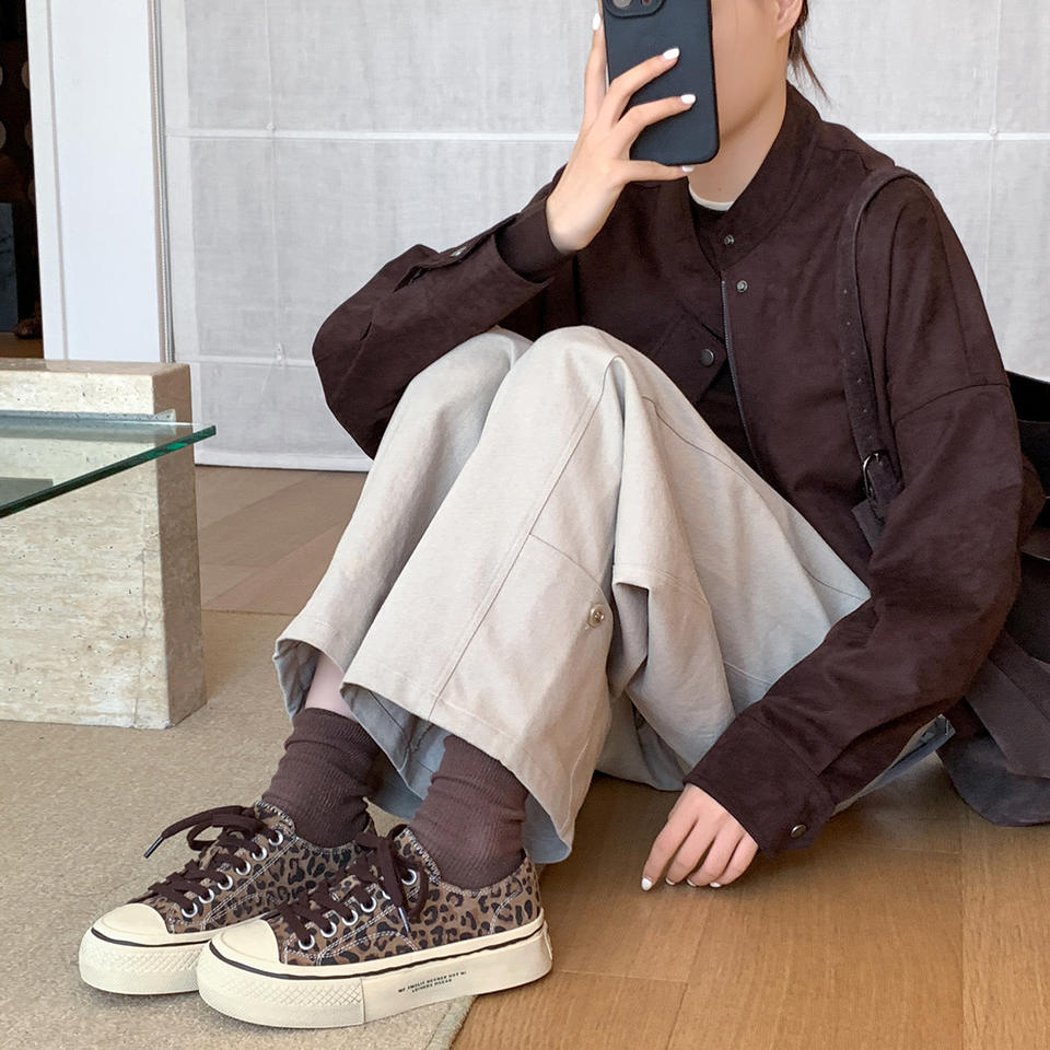 รองเท้าผู้หญิงสไตล์พรีปปี้แบบปรับแต่งได้รุ่นใหม่ปี 2026 ลายเสือดาว วินเทจ หัวกลม แบบผูกเชือก พื้นหนา รองเท้าลำลองแฟชั่น