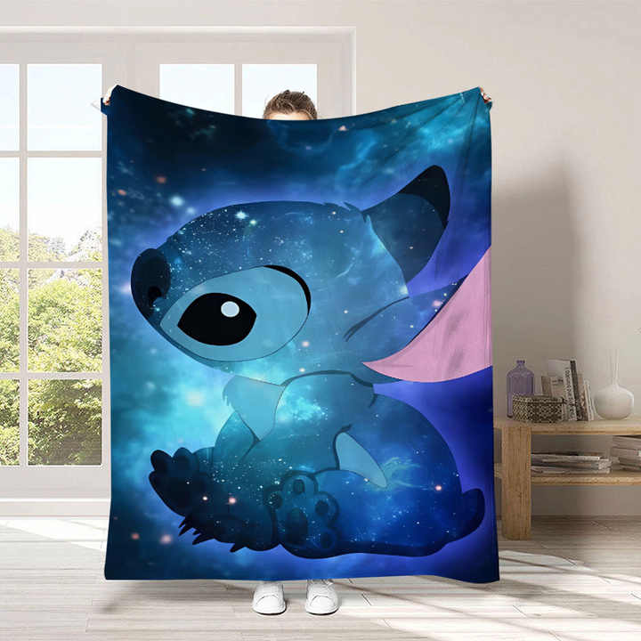ผ้าห่มนุ่มลายการ์ตูนสติทช์น่ารักปี 2026 แบบกำหนดเองได้ ผ้าฟลีซอุ่นสบาย ใช้ห่มโซฟา เตียง หรือในรถยนต์