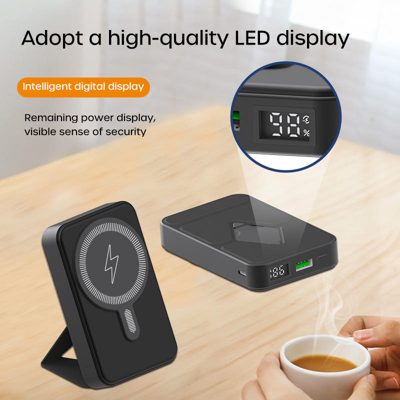 พาวเวอร์แบงค์ไร้สายขนาดเล็ก ดีไซน์ใหม่ ปี 2026 ความจุ 10000 มิลลิแอมป์ ชาร์จเร็ว 15 วัตต์ พร้อมที่วางโทรศัพท์ ใช้แบตเตอรี่ LI-Polymer